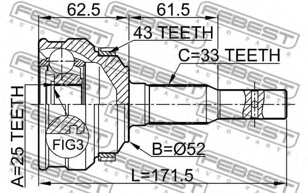 Шарнир, приводной вал FEBEST 1810-015A43
