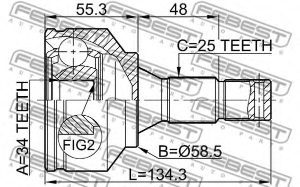 Шарнир, приводной вал FEBEST 2510-30720