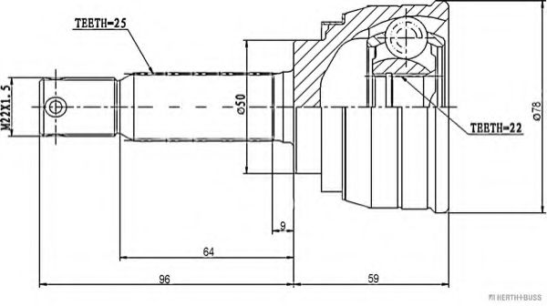 Шарнирный комплект, приводной вал HERTH+BUSS JAKOPARTS J2825001