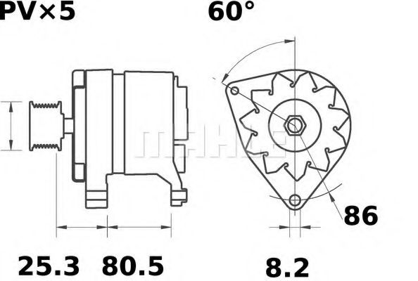 - расстояние от ременного шкива до генератора [мм]: 25,3